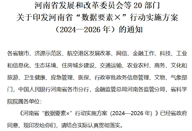 河南省發展和改革委員會等20部門 關于印發河南省“數據要素×